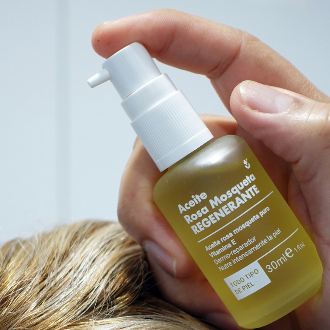 INGREDIENTES ACTIVOS: Aceite de rosa moqueta puro 90%: Emoliente, regenerador y cicatrizante. Vitamine E: Antioxidante e hidratante.