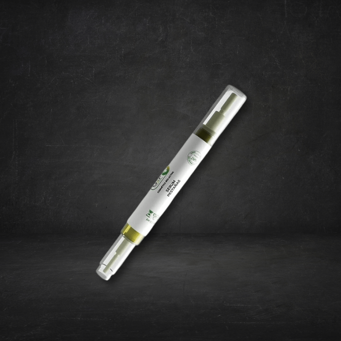 PRESENTACIÓN: Serum de pestañas en envase tipo aplicador eyerline de 2,5 ml con dispositivo dispensador y esponja en el extremo para su extensión en la base de la pestaña o ceja.